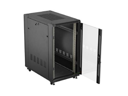 Opis produktu: Szafa instalacyjna rack stojąca - 19'' 22U 600 x 1200 mm - czarna - szklane drzwi - Lanberg FF01-6022-23B