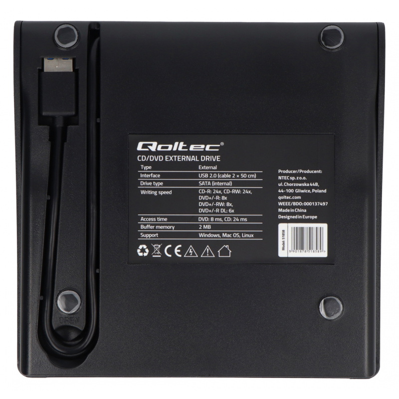 Opis produktu: Zewnętrzny napęd - nagrywarka DVD-RW USB 3.0 do odczytu i zapisu CD / DVD - Qoltec 51857