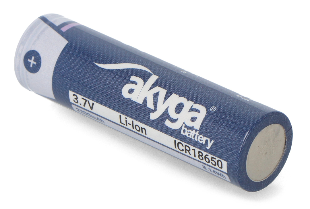 Akumulator 18650 litowo-jonowy w niebieskiej obudowie. Pojemność ogniwa to 2200 mAh, a jego napięcie nominalne wynosi 3,7 V. Produkt ma bardzo szerokie zastosowanie, może być wykorzystywany do zasilania latarki dużej mocy, laptopa, e-papierosa, a także innych urządzeń elektronicznych codziennego użytku. Ogniwo Li-Ion należy przechowywać w suchym i zacienionym miejscu, w temperaturze pokojowej. Produkt wysyłany w losowym kolorze.
