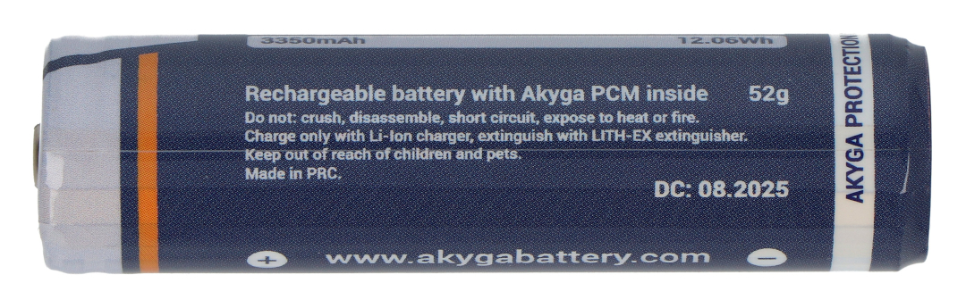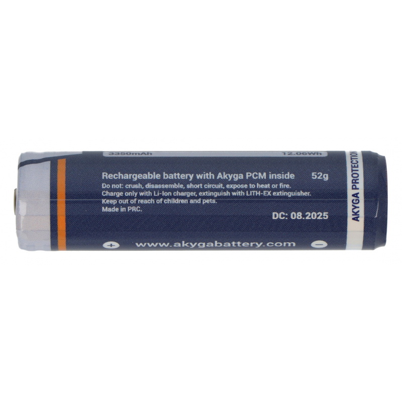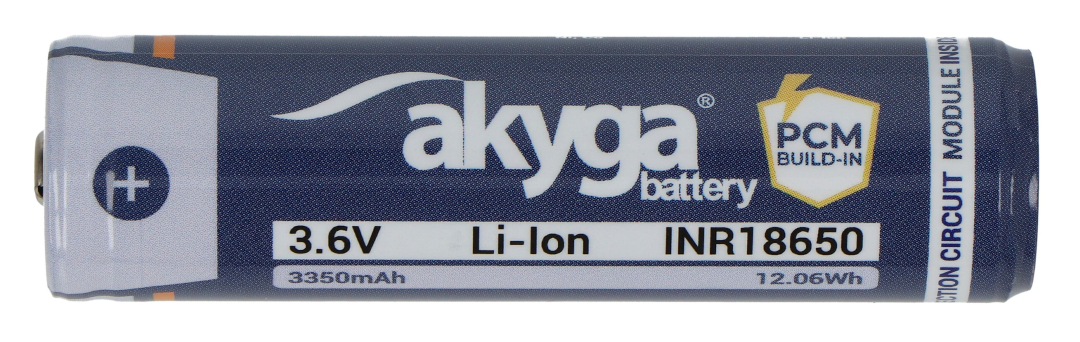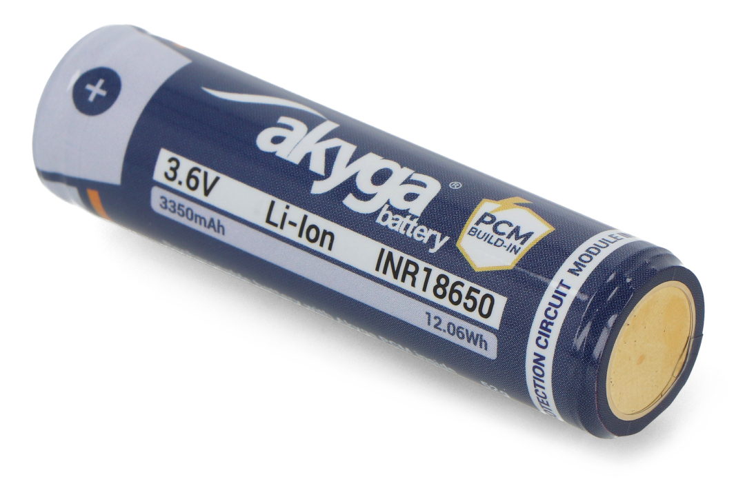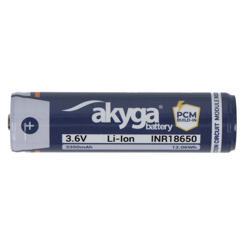Opis produktu: Ogniwo 18650 Li-Ion Akyga INR18650-33.5M-PCM 3,6 V / 3350 mAh z zabezpieczeniami