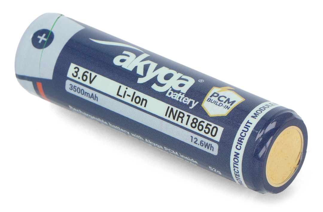Opis produktu: Ogniwo 18650 Li-Ion Akyga INR18650-35M-PCM 3,6 V / 3500 mAh z zabezpieczeniami