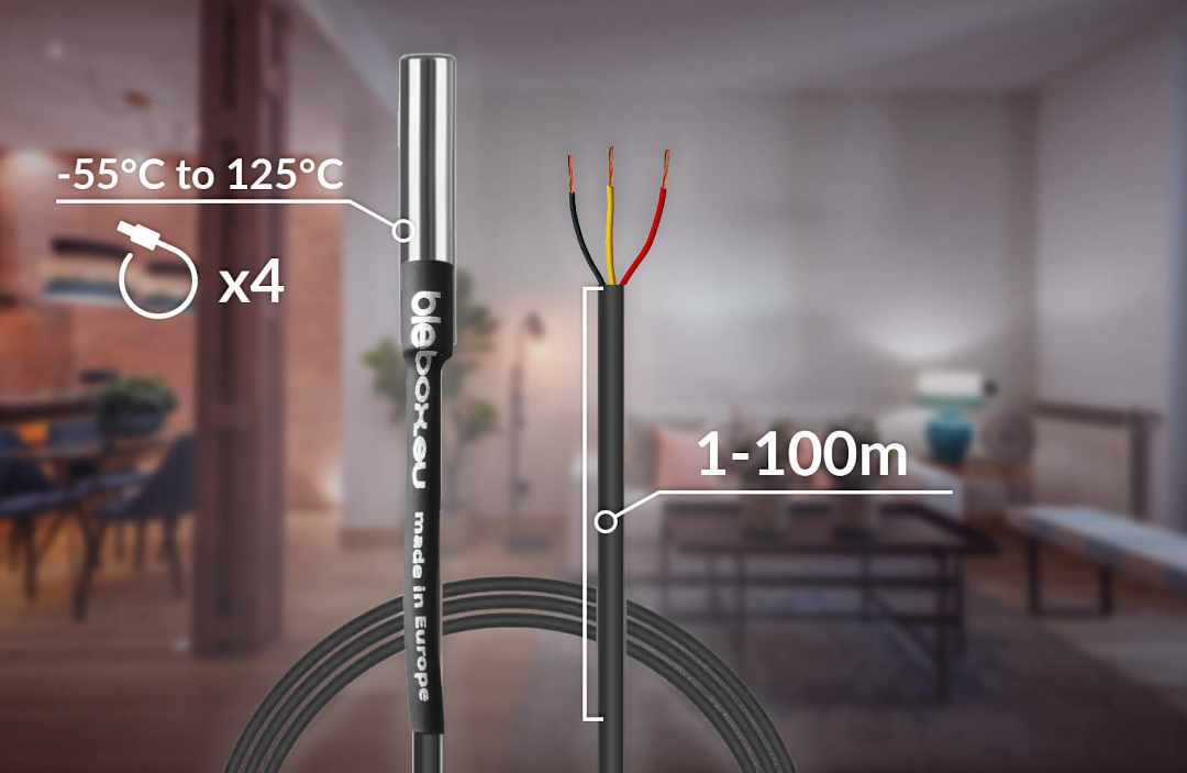 - Kompatybilność z sondami BleBox tempProbe: zapewnienie precyzyjnych pomiarów także w miejscach bardziej oddalonych oraz w takich, w których występuje problem z zasięgiem WiFi, dzięki niezawodnym, wodoodpornym sondom BleBox tempProbe