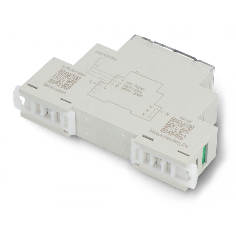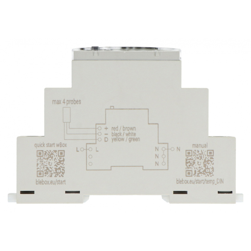 BleBox tempSensor DIN to inteligentny, czujnik temperatury zaprojektowany przez firmę BleBox. W połączeniu z wodoodpornymi sondami BleBox tempProbe umożliwia dokonywanie precyzyjnych pomiarów temperatury w nawet czterech punktach jednocześnie. Dzięki temu jest on wszechstronnym rozwiązaniem zarówno w przypadku chęci monitorowania temperatury w inteligentnych domach, jak i w ogrodach, saunach, basenach, miejscach przeznaczonych dla zwierząt np. w terrariach i akwariach. Sprawdzi się także w miejscach związanych z konkretnym przemysłem, przykładowo wędzarniczym, bądź w różnego rodzaju instalacjach przemysłowych oraz technicznych. Zakres temperatur, w którym możliwe jest dokonywanie pomiarów, wynosi od -55°C do 125°C. Czujnik jest montowany na szynę DIN w rozdzielni elektrycznej. Dzięki funkcji autodiagnostyki i możliwości wprowadzania korekty do mierzonej temperatury, urządzenie oferuje użytkownikowi pełną kontrolę nad jakością i dokładnością pomiarów, zapewniając niezawodność i wygodę w monitorowaniu temperatury w czasie rzeczywistym.