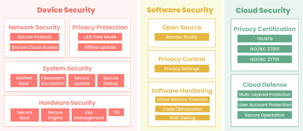 W ciągu ostatnich trzech lat Bambu Lab uczyniło bezpieczeństwo i prywatność kluczowymi filarami swojego rozwoju, inwestując w ekspercką wiedzę, nowoczesną infrastrukturę i nieustanne doskonalenie procesów.