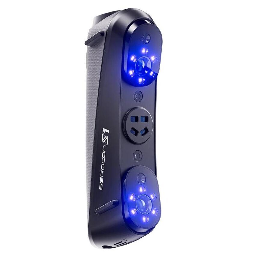 Creality Sermoon S1 to skaner 3D, który pozwala pracować zarówno z bardzo małymi, jak i dużymi obiektami – od 5 mm do nawet 4000 mm. Oferuje dokładność do 0,02 mm i pracuje z prędkością sięgającą 90 fps. Wykorzystuje hybrydowy system oparty na 42 liniach niebieskiego lasera oraz świetle strukturalnym NIR, co ułatwia dopasowanie trybu pracy do konkretnego zadania.