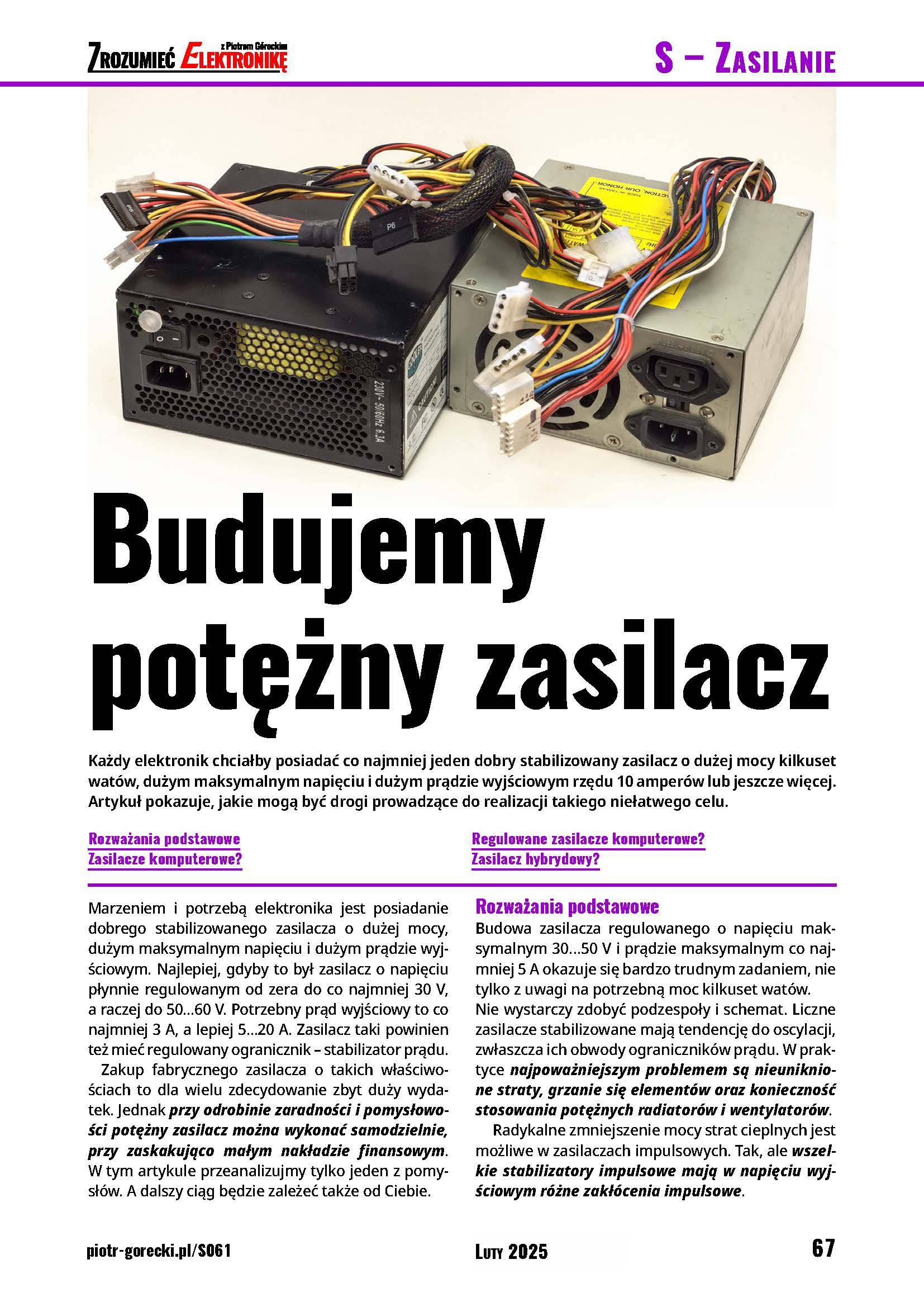 Od początku istnienia czasopisma, a także i w tym numerze, zajmujemy się tematem zasilaczy. Trzy moje prototypy będą dokładnie opisane w cyklu pokazującym, jak od zera projektuje się nieszumiące zasilacze liniowe.