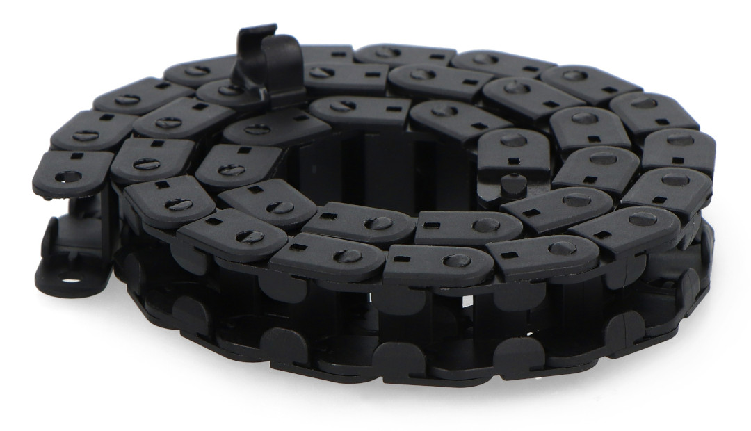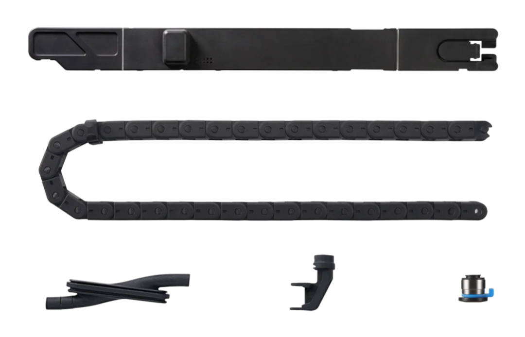 Prowadnik przewodów to praktyczne rozwiązanie zwiększające trwałość komponentów ruchomych drukarki. Ogranicza trasę przewodu głowicy oraz rurki PTFE do jednej płaszczyzny, eliminując ryzyko przypadkowego zagięcia lub przetarcia. Akcesorium to jest kompatybilne z drukarkami Bambu Lab z serii X1 oraz P1 i może być montowane zarówno jako element zastępczy, jak i jako ulepszenie istniejącej konstrukcji. W zestawie znajdują się wszystkie niezbędne elementy montażowe.