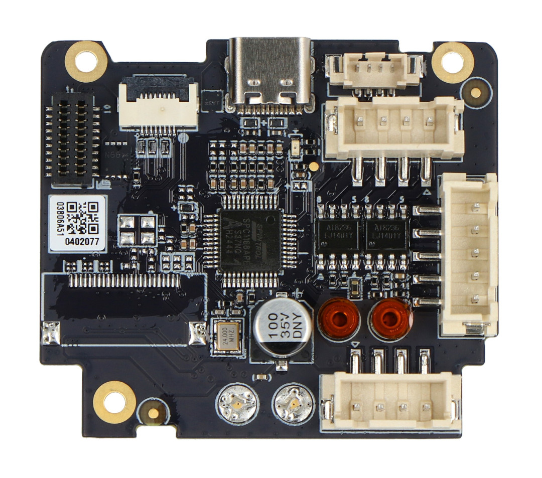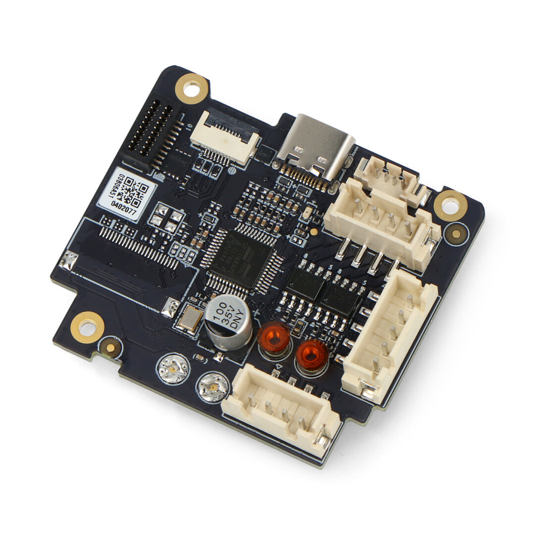 - Pełna integracja z głowicą drukującą - zapewnia niezawodne połączenia sygnałowe oraz zasilające, umożliwiając płynną i zsynchronizowaną pracę takich elementów jak grzałka hotendu, czujnik filamentu, wentylator chłodzący, a także ekstruder