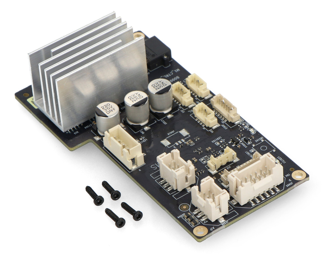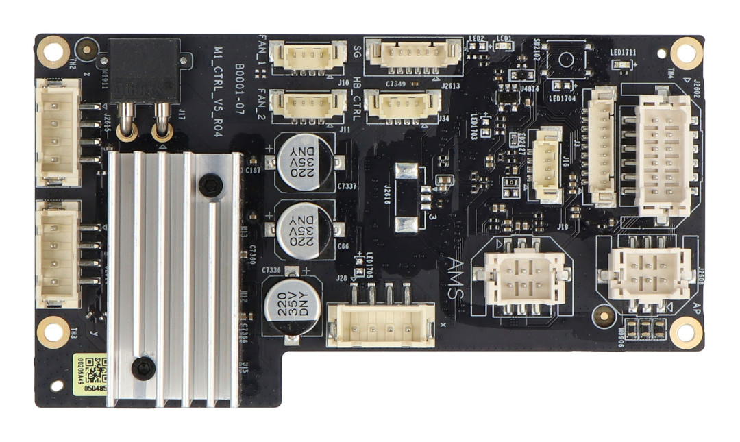 - Centralny moduł zarządzający drukarką 3D - zarządza ruchem osi XYZ, kontroluje parametry stołu grzewczego i odpowiada za komunikację z modułami peryferyjnymi, w tym systemem AMS