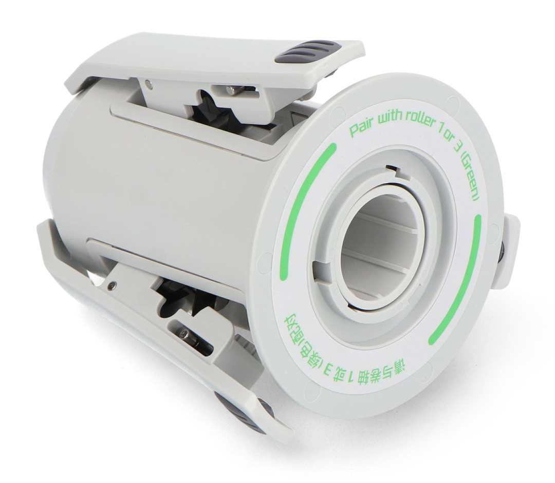 Uchwyt obrotowy szpuli w wersji zielonej, współpracuje z podajnikami AMS Lite, umożliwiając obrót szpuli filamentu w kierunku przeciwnym do ruchu wskazówek zegara. Montowany jest na dolnej prawej i górnej lewej rolce, podając filament do slotów 1 i 3. Dzięki konstrukcji z trzema pazurami szpula jest stabilnie utrzymywana na miejscu, co zapobiega jej przesuwaniu się i zapewnia ciągłość podawania filamentu. Wersja zielona działa wyłącznie na przypisanych rolkach, dlatego ważne jest dobranie odpowiedniej wersji przed zakupem.