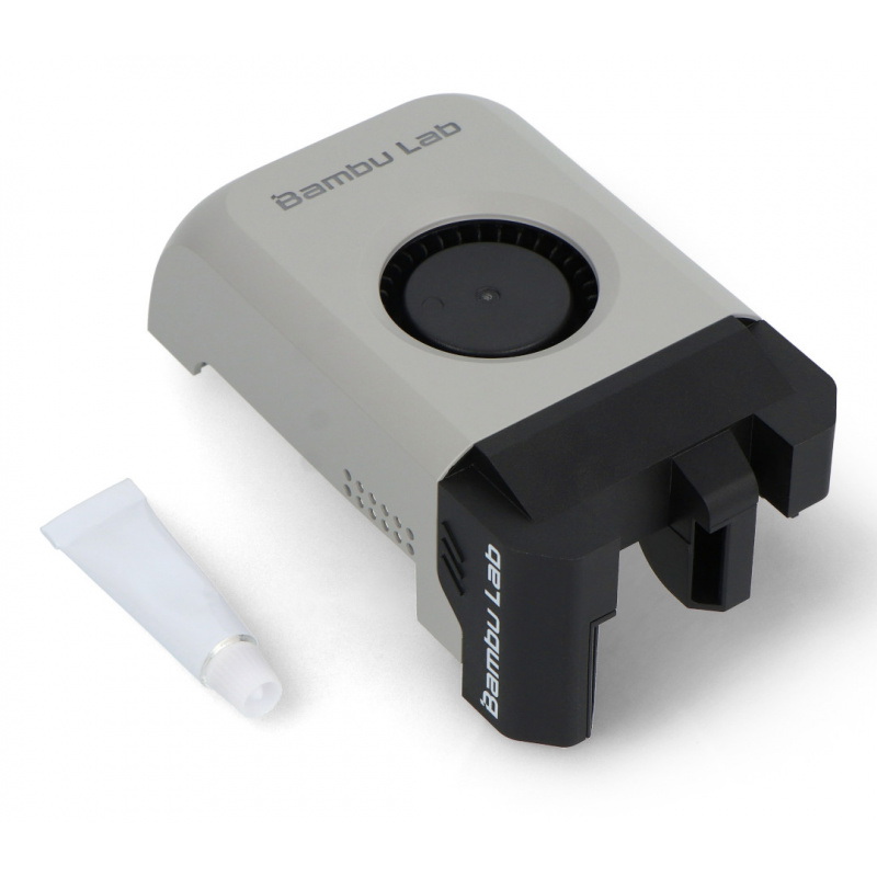 Przednia osłona głowicy to istotny element systemu chłodzenia w drukarkach Bambu Lab z serii X1. Dzięki zintegrowanemu wentylatorowi zapewnia efektywne schładzanie wydrukowanych warstw, co wpływa na ich stabilność i dokładność. Dodatkowo moduł zawiera diodę LED informującą o stanie pracy urządzenia oraz układ magnetyczny ułatwiający montaż. Pasuje wyłącznie do modeli z serii X1 - niekompatybilna z wersją P1P.