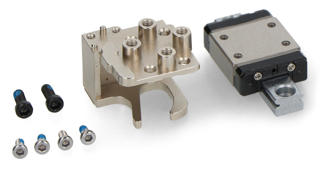 Prowadnica podnoszenia dyszy to element mechaniczny montowany w tylnej części hotendu w drukarkach 3D Bambu Lab. Składa się z prowadnicy i suwaka, które odpowiadają za ruch dyszy w osi pionowej. Komponent jest integralną częścią mechanizmu podnoszenia dyszy, który pozwala na dynamiczne dostosowywanie jej pozycji w zależności od trybu pracy głowicy. Zestaw zawiera wszystkie niezbędne elementy montażowe i jest kompatybilny z systemami H2D oraz H2D Laser.