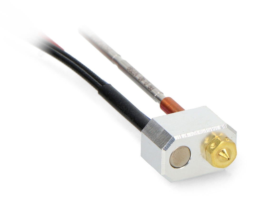 - 1x Głowica hotend do Nextrudera z dyszą mosiężną 0,4 mm do drukarek 3D Prusa MK4, XL, MK3.9, MK4S oraz CORE One - zmontowana