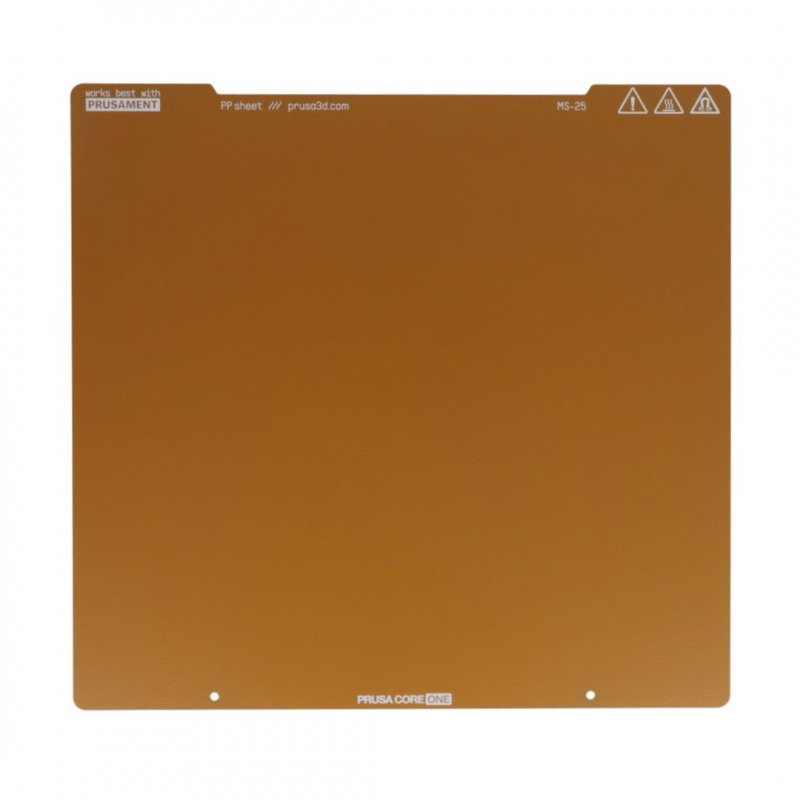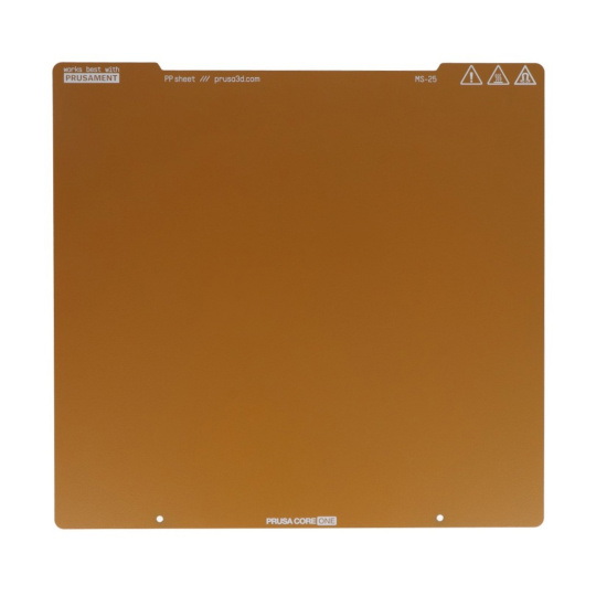Płyta jest wykonana ze stali sprężynowej i posiada trwałą powłokę proszkową, specjalnie przystosowaną do drukowania filamentami na bazie polipropylenu (PP). Przeznaczona do drukarek Prusa CORE One. Teksturowana powierzchnia nie tylko poprawia przyczepność wydruków, ale także maskuje drobne uszkodzenia mechaniczne powstałe podczas eksploatacji. Powłoka proszkowa zapewnia równomierne rozpraszanie ciepła, chroniąc płytę przed odkształceniem podczas kontaktu z nagrzaną dyszą. Teksturowana powierzchnia nadaje wydrukom charakterystyczny, delikatny wzór, który jest widoczny od spodu modeli, a niewielkie zadrapania nie wpływają na jakość druku.