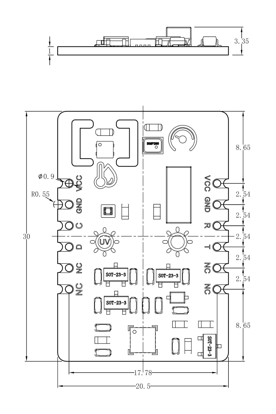 - Wysoce zintegrowany moduł, może monitorować różne dane w tym samym czasie (temperatura, wilgotność, ciśnienie barometryczne, wysokość, natężenie promieniowania ultrafioletowego, natężenie światła otoczenia)