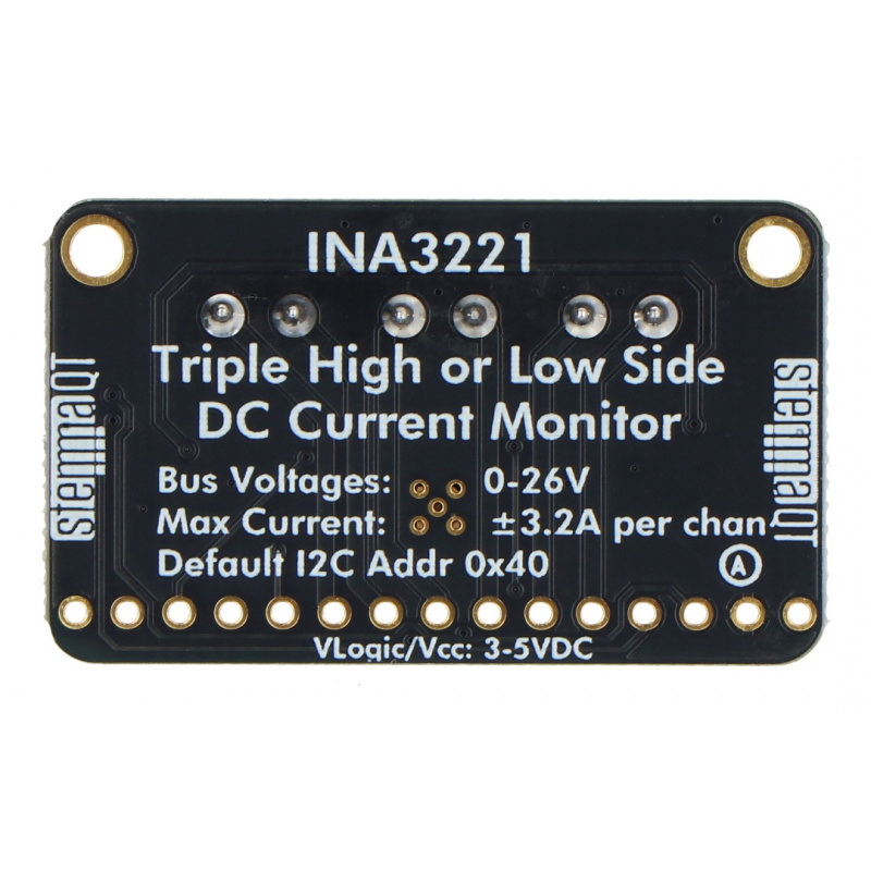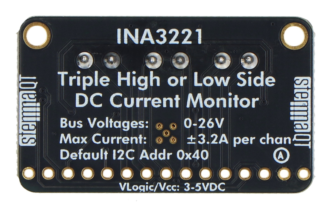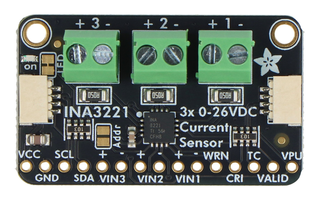 Opis produktu: INA3221 - czujnik prądu i napięcia 0 - 26 V DC 3,2 A - 3-kanałowy - I2C - STEMMA QT / Qwiic - Adafruit 6062