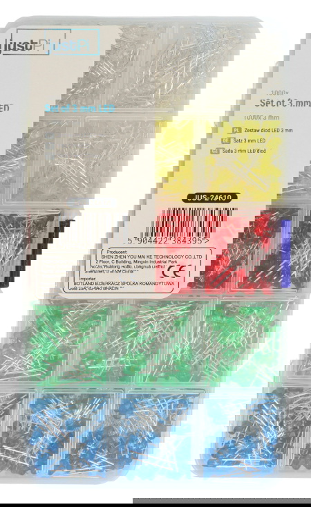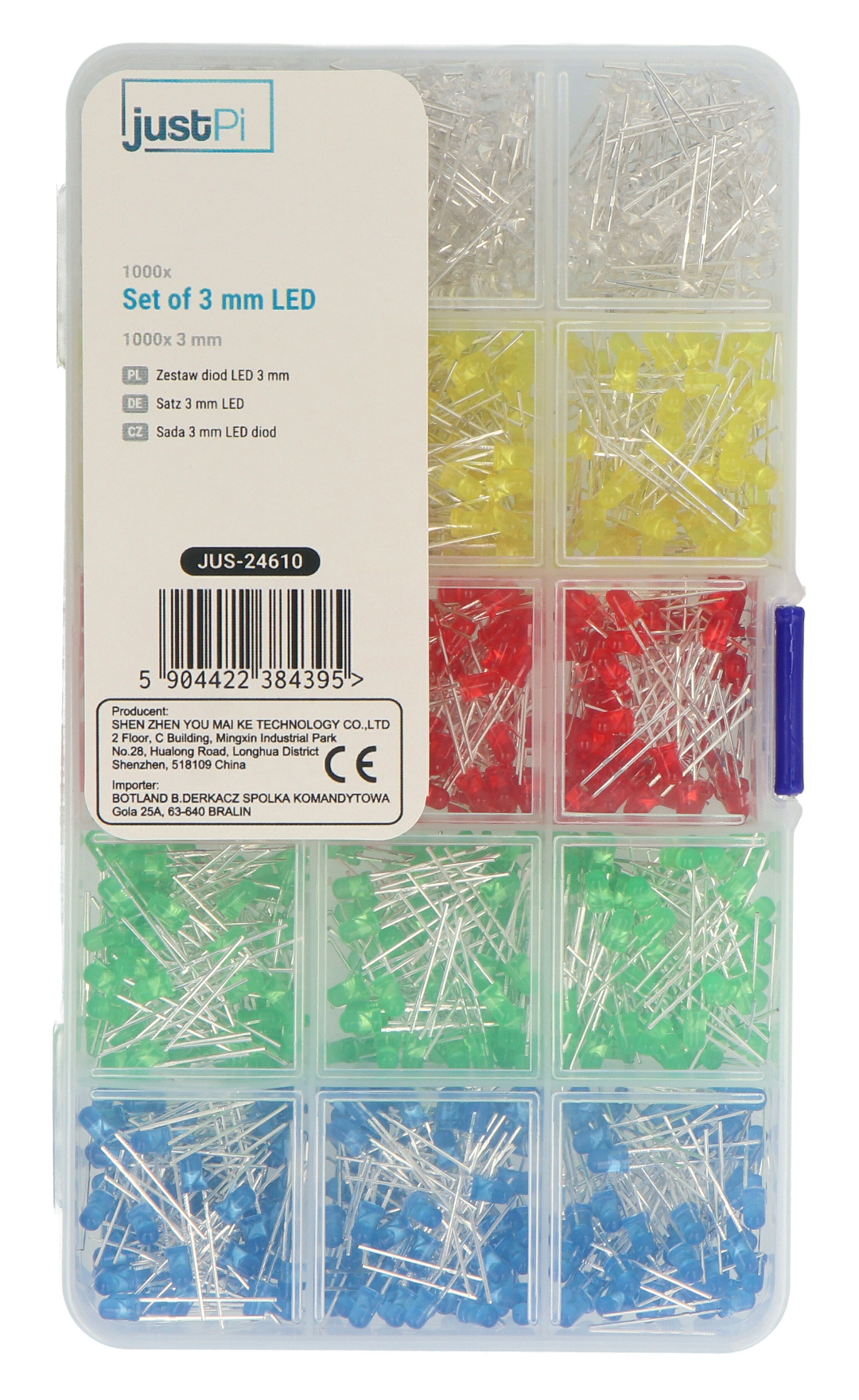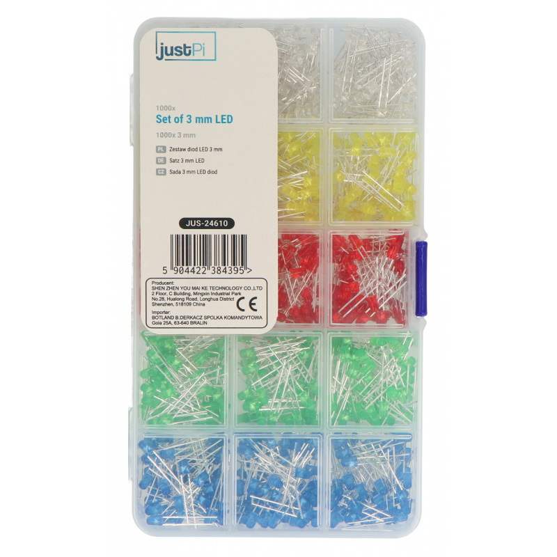 Opis produktu: Zestaw diod LED 3 mm - justPi - 1000 szt. + organizer