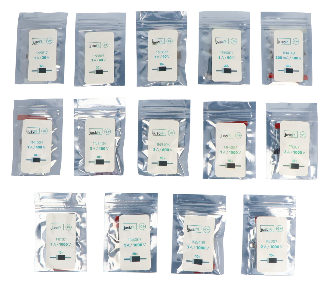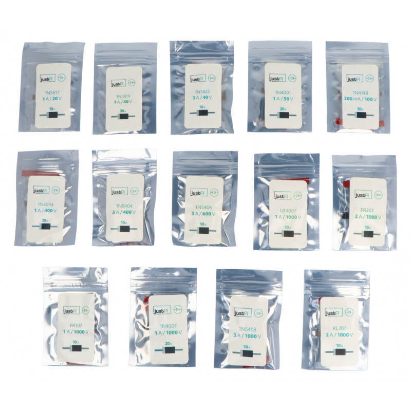 Opis produktu: Zestaw diod prostowniczych - różne rodzaje - 200 sztuk - JustPi