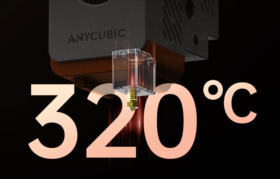 Standardowo drukarka wyposażona jest w hotend o temperaturze pracy do 320°C, co pozwala na druk z szerokiego zakresu materiałów, w tym filamentów wysokotemperaturowych. Ceramiczny rdzeń hotendu zapewnia wysoką odporność na ciepło i niską powierzchnię tarcia, co przekłada się na płynność ekstruzji i minimalizację zatorów. Wymiana hotendu odbywa się błyskawicznie dzięki systemowi Tools-Free Hotend Disassembly. Dodatkowo, zastosowany układ 1 + 1 + 1 Cooling System gwarantuje niezależne chłodzenie modelu, ekstrudera i elektroniki.