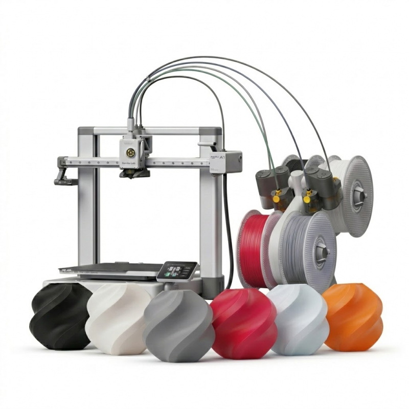 System zaprojektowany przez firmę Bambu Lab umożliwiający druk wielomateriałowy. Tak jak w przypadku systemu wykorzystywanego w popularnych drukarkach z serii X1 oraz P1, AMS Lite mieści 4 szpule filamentu. Umożliwia on eksplorację różnych kolorów i materiałów, co otwiera szerokie możliwości twórcze. Ułatwia także drukowanie podpór z materiału rozpuszczalnego w wodzie lub filamentu łatwo wyłamywanego. Sprężynowe uchwyty poprawiają kompatybilność z różnymi szpulami, również tymi papierowymi. System AMS Lite wykorzystuje technologię RFID identyfikującą zastosowany filament. Czytnik RFID współpracuje wyłącznie ze szpulami Bambu Lab.