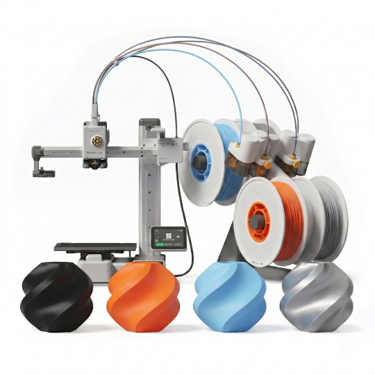 System zaprojektowany przez firmę Bambu Lab umożliwiający druk wielomateriałowy. Tak jak w przypadku systemu wykorzystywanego w popularnych drukarkach z serii X1 oraz P1, AMS Lite mieści 4 szpule filamentu. Umożliwia on eksplorację różnych kolorów i materiałów, co otwiera szerokie możliwości twórcze. Ułatwia także drukowanie podpór z materiału rozpuszczalnego w wodzie lub filamentu łatwo wyłamywanego. Sprężynowe uchwyty poprawiają kompatybilność z różnymi szpulami, również tymi papierowymi. System AMS Lite wykorzystuje technologię RFID identyfikującą zastosowany filament. Czytnik RFID współpracuje wyłącznie ze szpulami Bambu Lab.