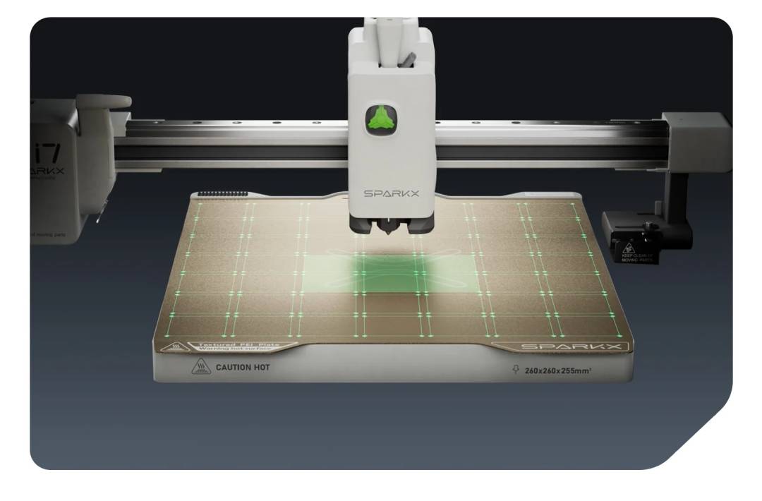 Dzięki zastosowaniu funkcji takich jak Pressure Advance i Input Shaping, drukarka minimalizuje zjawiska typu ringing i smużenie na krawędziach, gwarantując wysoką jakość powierzchni i ostre detale. Prędkość druku dochodzi do 500 mm/s, a przyspieszenie maksymalne to aż 10000 mm/s². SparkX i7 to również wyjątkowo cicha drukarka - tryb „Night Mode” wyłącza wszystkie światła i przełącza urządzenie w niemal bezgłośny tryb pracy, co czyni ją idealnym wyborem do pracy w domu lub biurze.