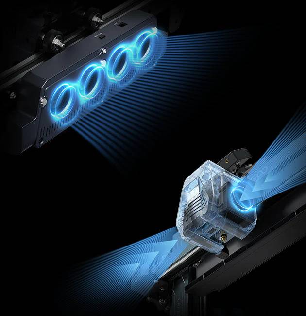 Neptune 4 Pro oferuje efektywne chłodzenie warstw dzięki aż sześciu wentylatorom: dwóm bocznym 4015 oraz czterem tylnym 4020 z łożyskami kulkowymi. Taki układ zapewnia natychmiastowe schłodzenie świeżo wydrukowanych warstw nawet przy bardzo dużych prędkościach, co przekłada się na lepsze mostkowanie i jakość przewieszeń. Konstrukcja drukarki oparta jest na aluminiowym stelażu CNC oraz prowadnicach POM, które zapewniają płynną i cichą pracę. Dodatkowo, wszystkie osie wykorzystują sterowniki silników krokowych o niskim poziomie hałasu - poniżej 50 dB.