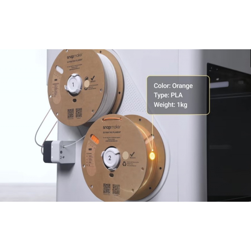 U1 wykorzystuje technologię RFID do wykrywania parametrów takich jak kolor, typ i inne cechy oficjalnych filamentów Snapmaker, bez konieczności ręcznego wpisywania jakichkolwiek danych.