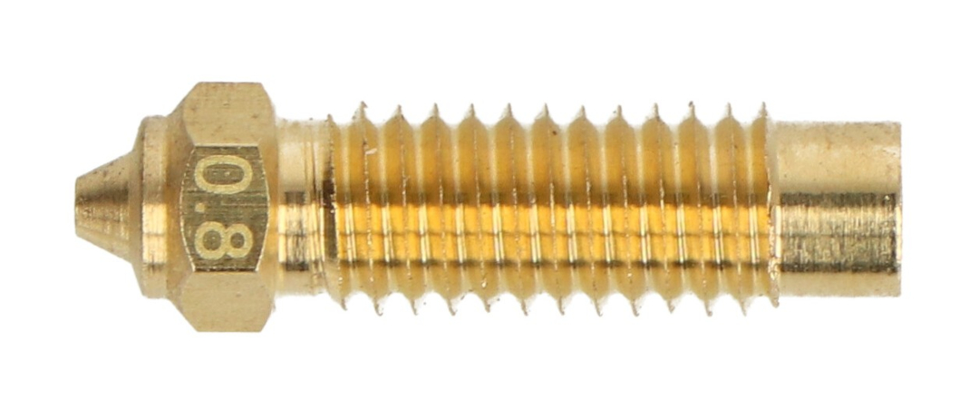 Dysza 0,8 mm to świetny wybór dla użytkowników drukujących duże elementy i modele techniczne, gdzie ważna jest wydajność i czas realizacji. Umożliwia pracę z najpopularniejszymi filamentami takimi jak PLA, PETG, ABS oraz TPU. Dzięki precyzyjnej konstrukcji zapewnia stabilne parametry druku nawet przy dużej objętości wytłaczanego materiału.
