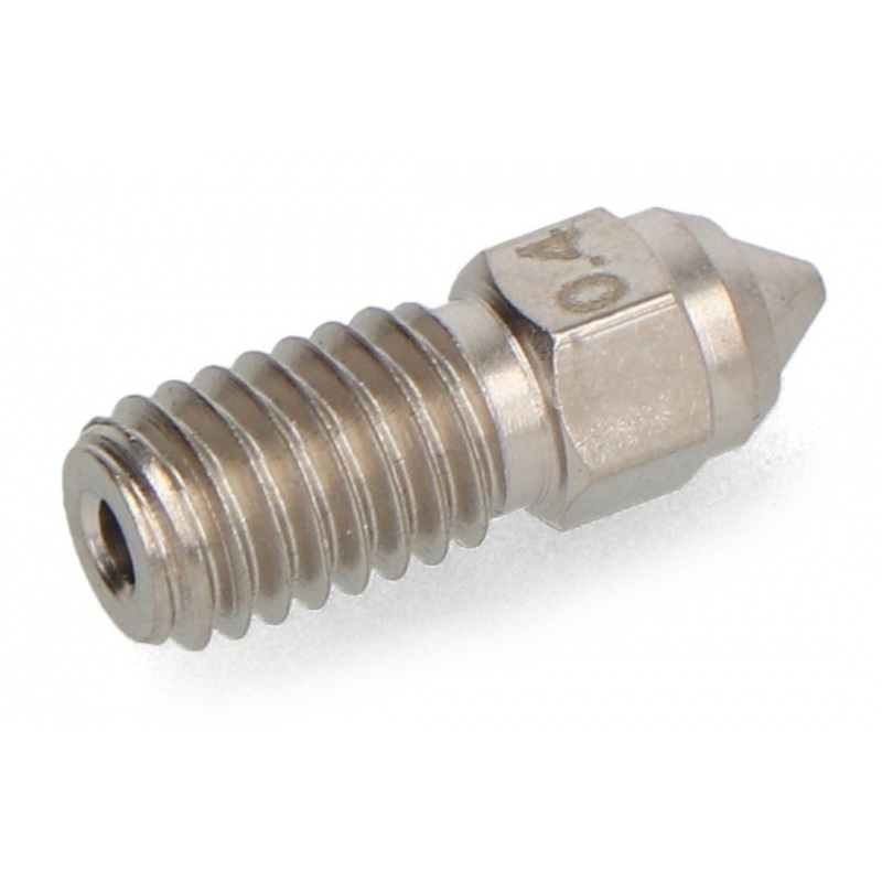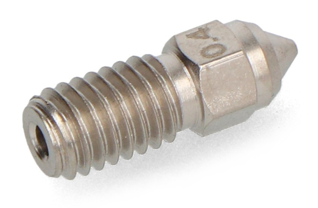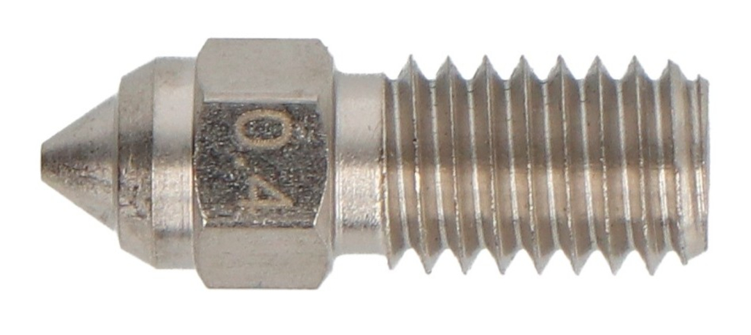 Dysza 0,4 mm sprawdzi się doskonale w projektach, gdzie kluczowe znaczenie ma dokładność detali i jakość wykończenia powierzchni. Idealna do prototypów technicznych, modeli funkcjonalnych i dekoracyjnych, jak również do druku z materiałów ściernych, takich jak filamenty wzmacniane włóknem węglowym. Dzięki zastosowaniu stali hartowanej, nawet długie serie wydruków z trudnych filamentów nie obniżą wydajności komponentu.