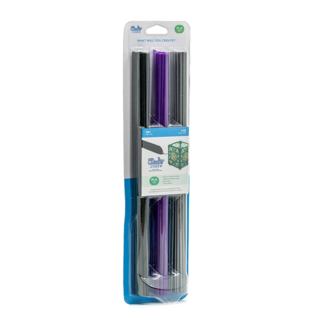 Filament 3Doodler Create+ to komplet 75 wysokiej jakości wkładów PLA o średnicy 3 mm, kompatybilnych z popularnymi długopisami 3Doodler Create, PRO, 2.0 i 1.0. W zestawie znajdują się trzy różne kolory - czarny, fioletowy i szary. Materiał PLA jest przyjazny dla środowiska i doskonale sprawdza się w projektach artystycznych dzięki swojemu połyskowi i sztywności. To idealny wybór zarówno dla początkujących, jak i zaawansowanych użytkowników piór 3D.