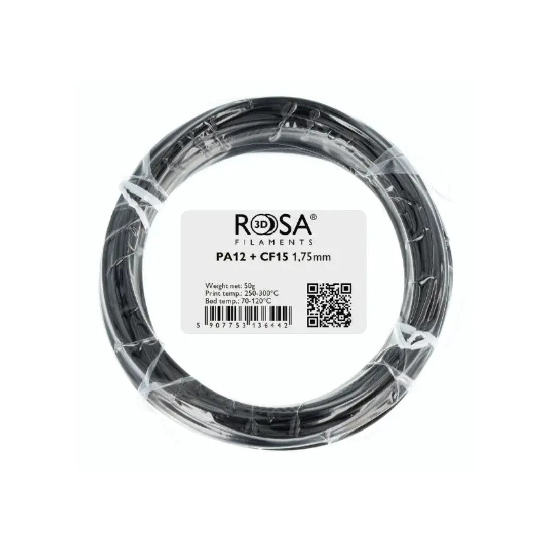 Opis produktu: Filament Rosa3D PA12 + 15CF 1,75 mm 50 g - Black