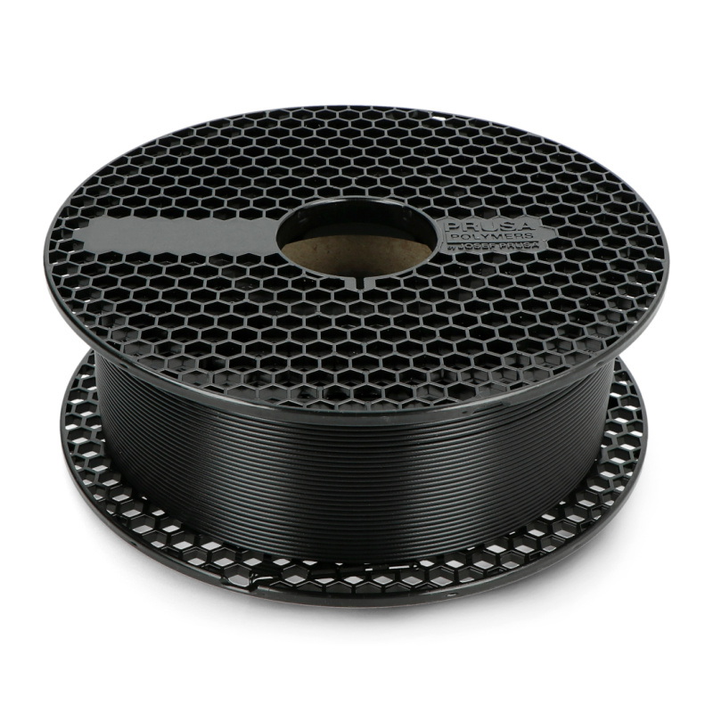 Filament PETG w kolorze czarnym, którego producentem jest Prusa. Cechą charakterystyczną modeli 3D uzyskiwanych z firmowego filamentu tego uznanego producenta drukarek jest zwiększona elastyczność oraz wysoki poziom wykończenia detali. Materiał do drukowania ma średnicę 1,75 mm. Masa nawiniętego na szpulę produktu to 1 kg.