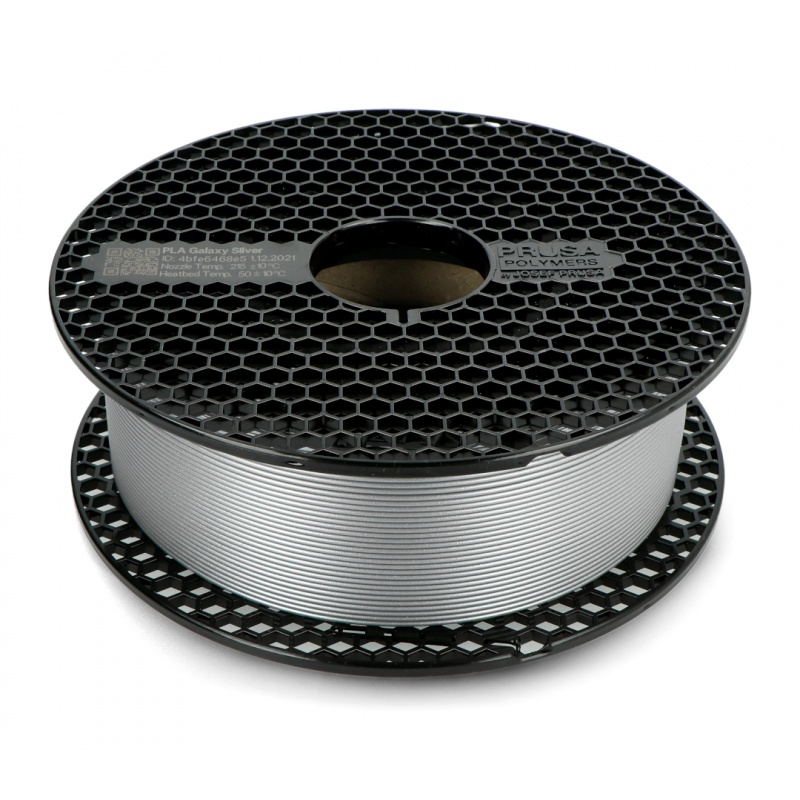 Filament firmy Prusa przeznaczony jest do drukarek 3D drukujących w technologii FDM. PLA ma stosunkowo niską temperaturę topnienia około 175°C. Filament w kolorze Galaxy Silver (srebrnym) o średnicy 1,75 mm i masie netto równej 1 kg. Jest biodegradowalny, został wytworzony z odnawialnych surowców naturalnych. Może być wielokrotnie nagrzewany powyżej temperatury topnienia bez znacznej utraty właściwości. Charakteryzuje się niską wytrzymałością temperaturową, dedykowany do użytku wewnątrz pomieszczeń.