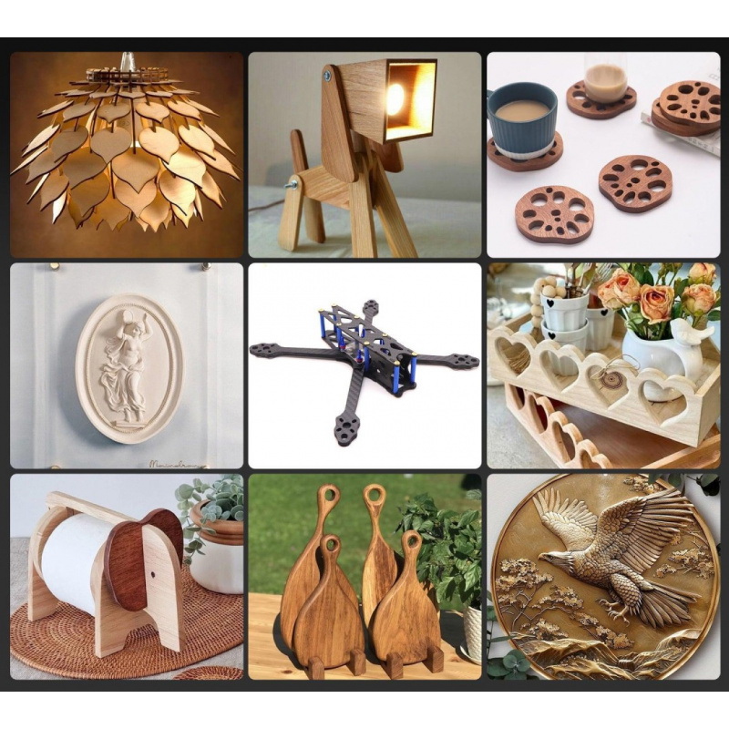 Maszyna radzi sobie z szeroką gamą materiałów - od drewna i MDF, przez akryl i włókno węglowe, aż po aluminium, miedź czy stal nierdzewną. Dzięki temu można wykorzystać ją w warsztatach stolarskich, pracowniach prototypowych, a także przy produkcji elementów użytkowych i dekoracyjnych. Wszechstronność urządzenia sprawia, że sprawdzi się zarówno w zastosowaniach amatorskich, jak i profesjonalnych.