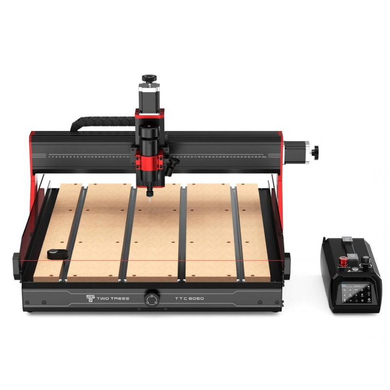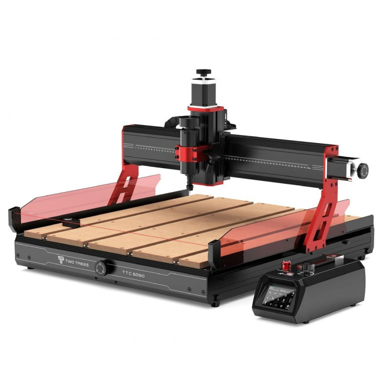 Two Trees TTC6050 posiada dotykowy ekran o przekątnej 3,5'', który ułatwia sterowanie, kalibrację oraz przełączanie między trybem CNC a opcjonalnym trybem laserowym. Zintegrowany system bezpieczeństwa wykorzystuje czujniki podczerwieni, które zatrzymują wrzeciono w ciągu jednej sekundy w przypadku wykrycia zagrożenia. Dodatkowo urządzenie wyposażono w funkcję awaryjnego stopu, co zwiększa komfort i bezpieczeństwo pracy.