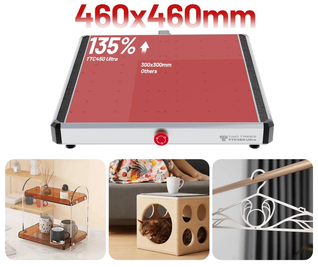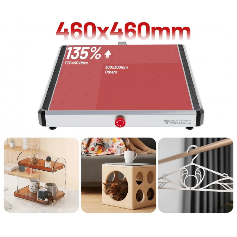 TTC-450 Ultra to wszechstronne i gotowe do pracy urządzenie z dużym polem roboczym o wymiarach 460 x 460 mm.