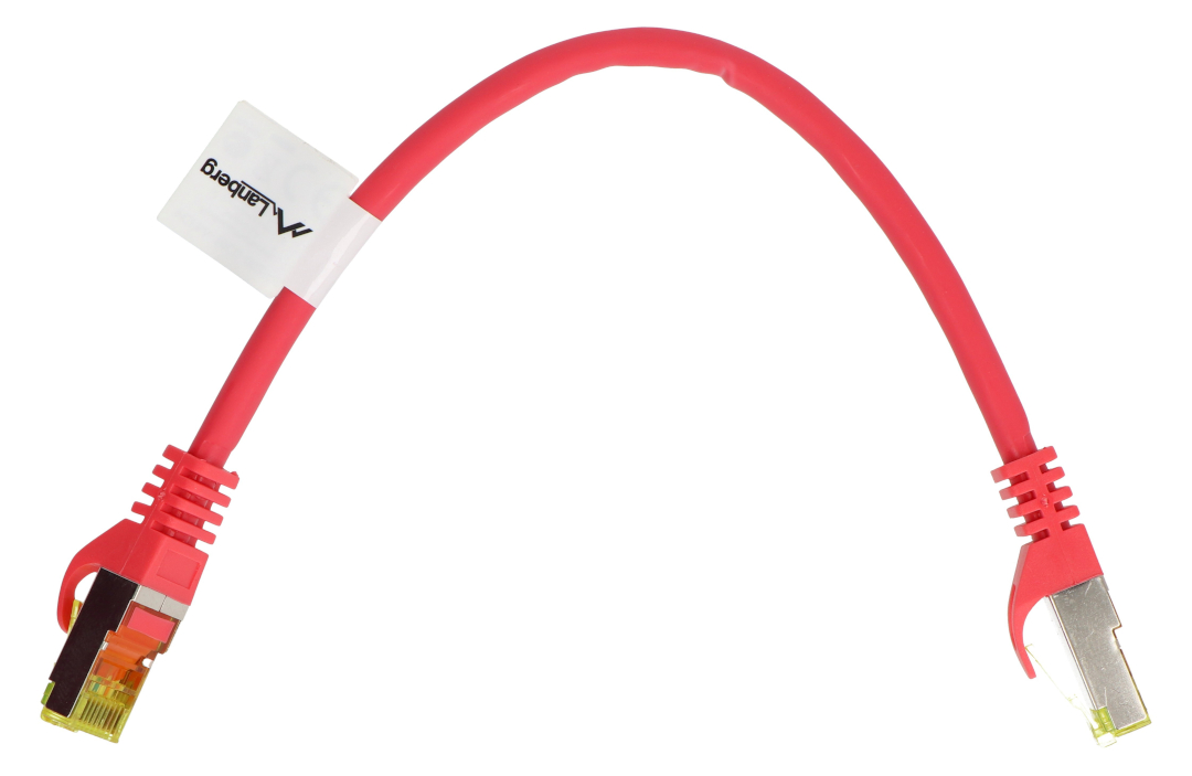 Opis produktu: Przewód sieciowy Lanberg Ethernet Patchcord S/FTP 6a 0,25 m - czerwony