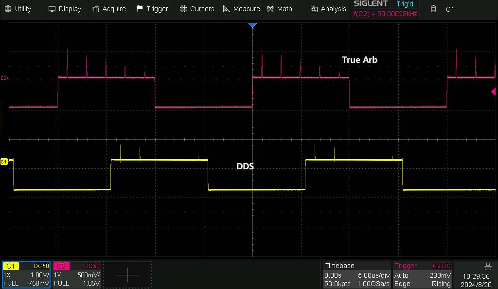 Technologia TrueArb, zaimplementowana w SDG1062X Plus, umożliwia generowanie przebiegów arbitralnych z zachowaniem pełnej precyzji każdego punktu. W odróżnieniu od klasycznych generatorów DDS, TrueArb działa w architekturze punkt-po-punkcie, eliminując błędy interpolacji i jitter, co przekłada się na wyjątkową wierność odwzorowania sygnału. Technologia ta pozwala na tworzenie sygnałów o długości od 24 Mpts do 8 Mpts przy częstotliwości próbkowania do 250 MSa/s.