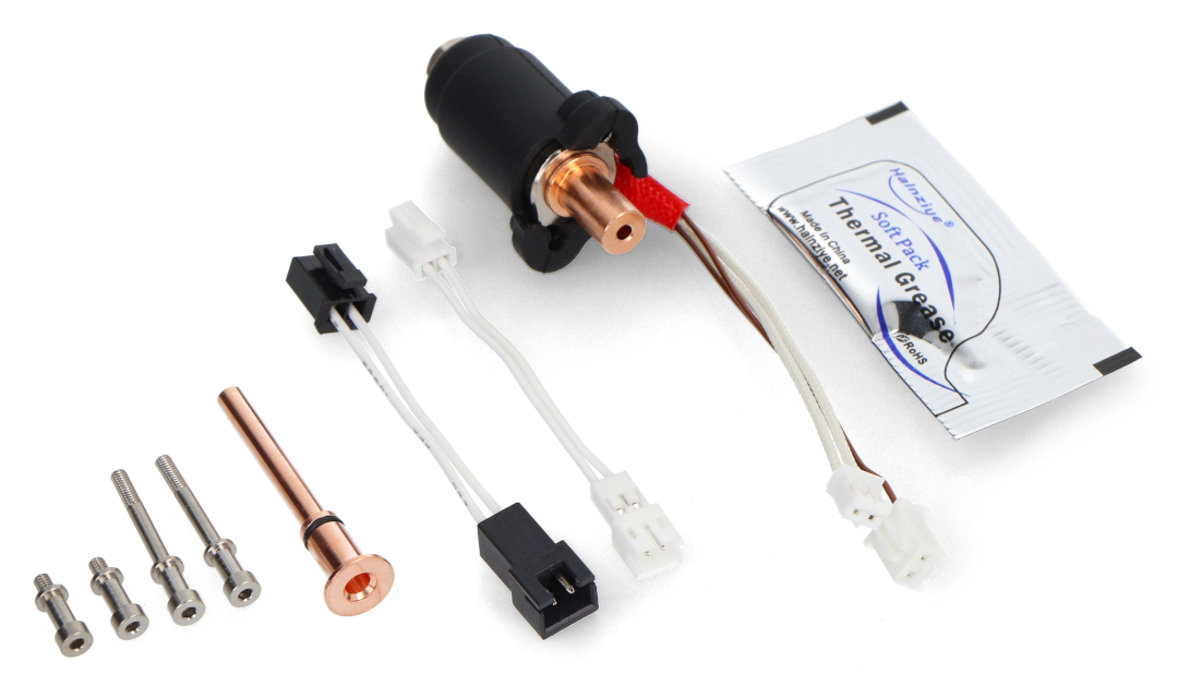 Zastosowana w hotendzie cylindryczna grzałka ceramiczna oraz strefa topienia o długości 28,6 mm pozwalają osiągnąć wysoką wydajność przepływu - kluczową przy szybkim drukowaniu. W pełni metalowa konstrukcja (m.in. rdzeń z niklowanej miedzi i śruby tytanowe) zapewnia długowieczność i odporność na uszkodzenia. Każdy egzemplarz hotendu jest testowany w pełnym cyklu grzewczym, co gwarantuje niezawodność działania.