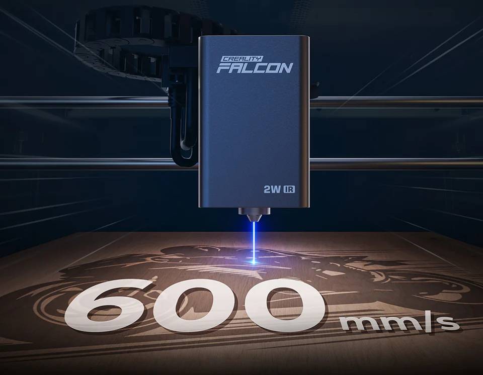Moduł laserowy IR Creality Falcon o mocy 2 W został zaprojektowany z myślą o użytkownikach oczekujących wysokiej precyzji i szerokich możliwości grawerowania. Dzięki zastosowaniu lasera podczerwonego 1064 nm skutecznie obrabia materiały, które są trudne do znakowania przy użyciu standardowych modułów diodowych. Plamka lasera o rozmiarze zaledwie 0,03 mm pozwala wykonywać bardzo szczegółowe wzory, napisy, grafiki i zdjęcia na małych powierzchniach. Moduł pracuje z prędkością do 600 mm/s i oferuje dokładność ruchu na poziomie 0,01 mm. Jest przeznaczony do pracy z ploterem Creality Falcon A1 Pro 20 W.