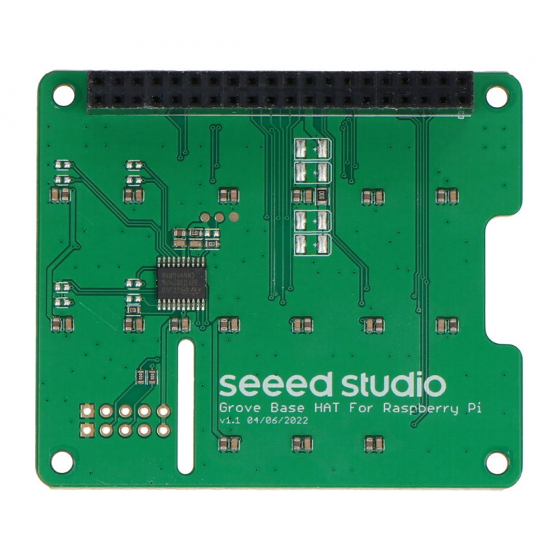 Nakładka dla Raspberry Pi 4B / 3B+ / 3B oparta o mikrokontroler STM32 z 12-bitowym przetwornikiem ADC, ze złączami Grove, umożliwia podłączenie czujników i modułów z serii Grove komunikujących się poprzez interfejs cyfrowy, analogowy, I2C, PWM, UART. Obecnie ponad 60 modułów Grove jest wspieranych przez nakładkę Grove Base Hat.