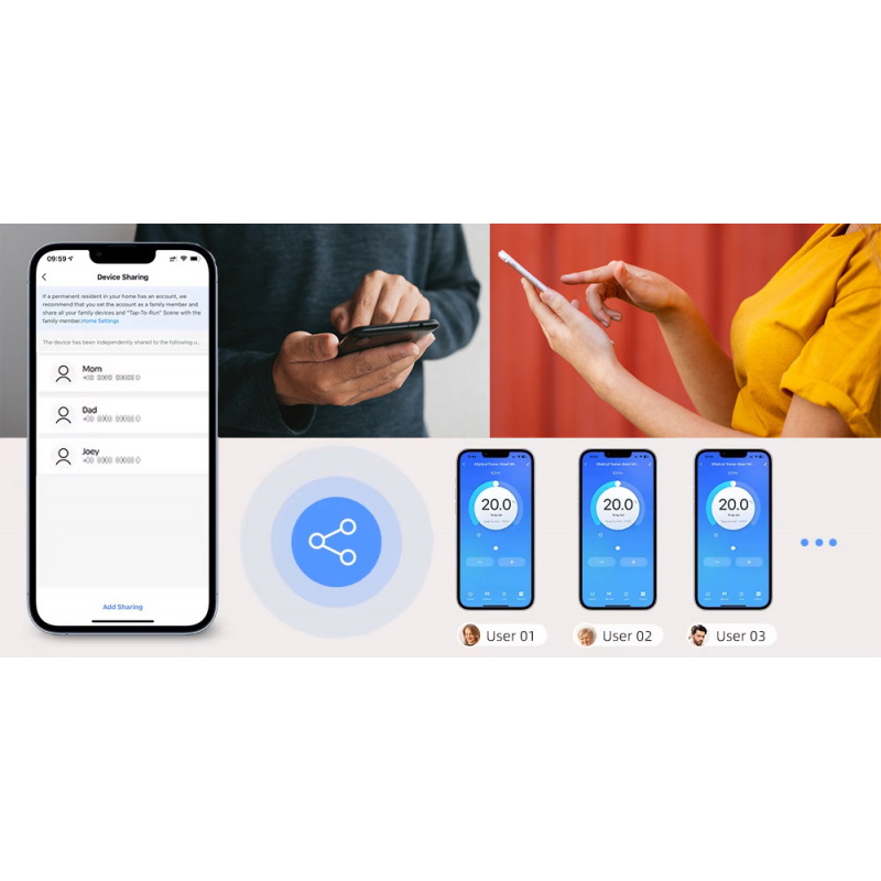 Termostat Tuya WiFi TR021 zapewnia możliwość udostępnienia opcji zdalnego sterowania innym użytkownikom.