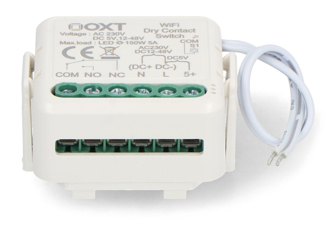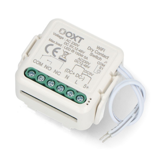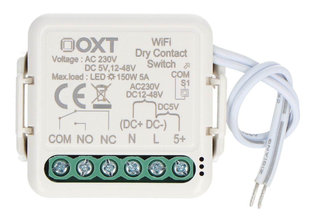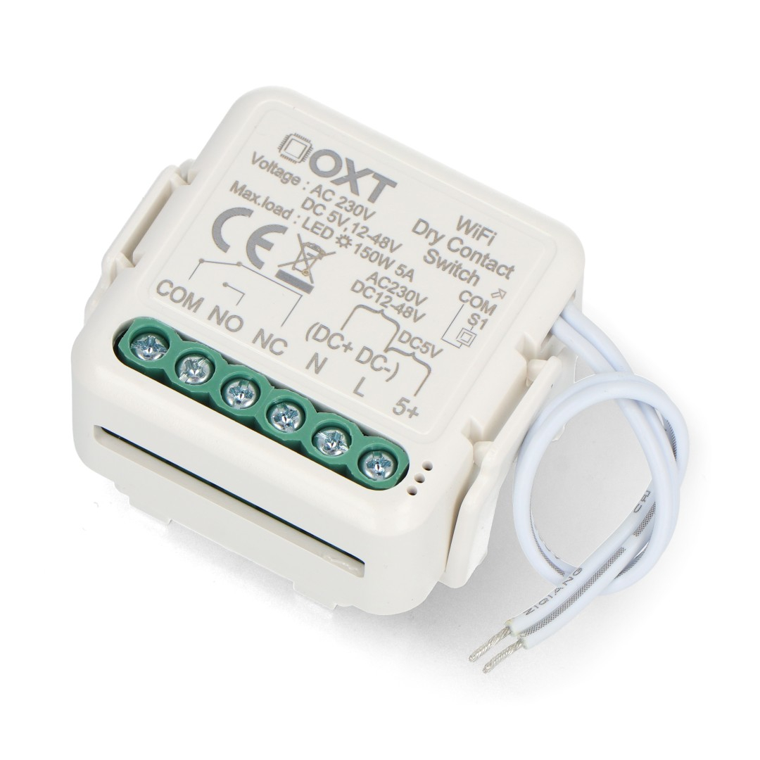 Beznapięciowy mini przekaźnik jednokanałowy od firmy OXT z bezprzewodową komunikacją WiFi. Urządzenie doskonale sprawdzi się w różnych zastosowaniach, takich jak sterowanie beznapięciowe, oświetleniem, bramami czy siłownikami. Może działać zarówno z aplikacją, jak i pełnić rolę przełącznika monostabilnego, bistabilnego lub z opcją synchronizacji przycisków. Wyposażone jest w porty NC oraz NO, co zwiększa możliwości konfiguracji z różnymi urządzeniami. Współpracuje z darmową aplikacją Tuya Smart, umożliwiając tworzenie inteligentnych scenariuszy w zależności od godziny, warunków pogodowych czy położenia słońca na niebie, we współpracy z innymi urządzeniami podłączonymi do tej samej sieci.
