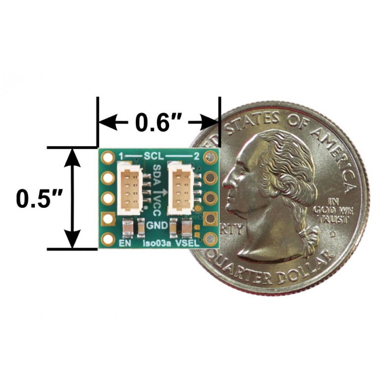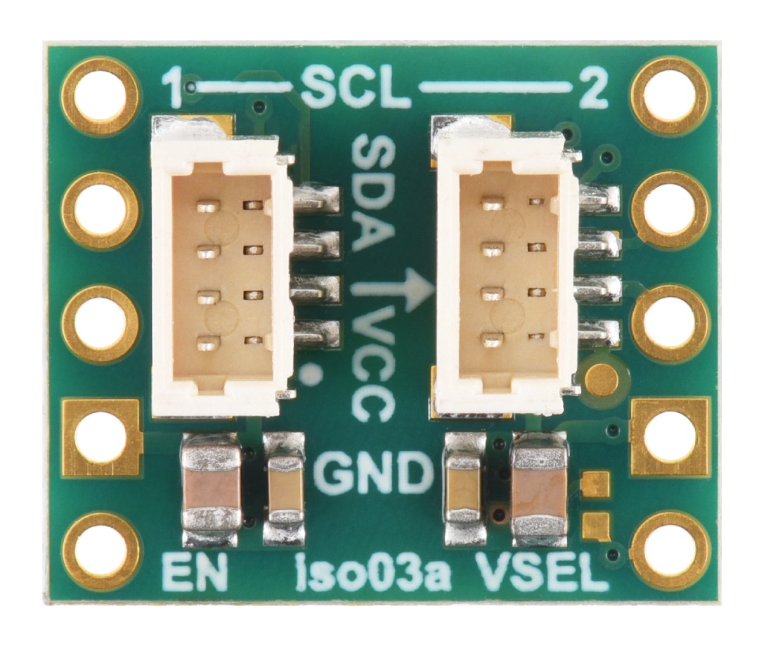 Opis produktu: ISO1640 - dwukierunkowy izolator I2C z izolowanym zasilaniem - JST SH 4-pin - 5 V / 3,3 V, 200 mA - Pololu 5393