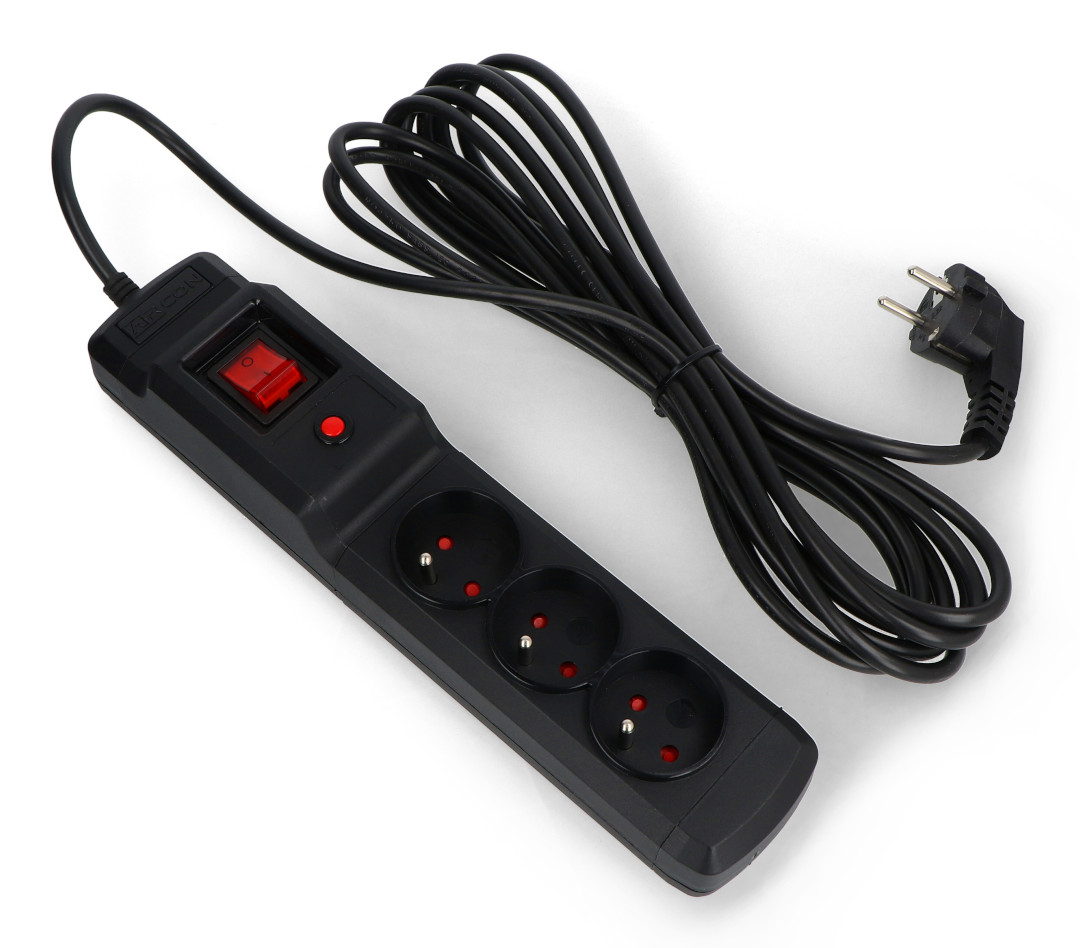 Opis produktu: Listwa zasilająca z zabezpieczeniami Arcon Multi M3 czarna - 3 gniazda - 5 m