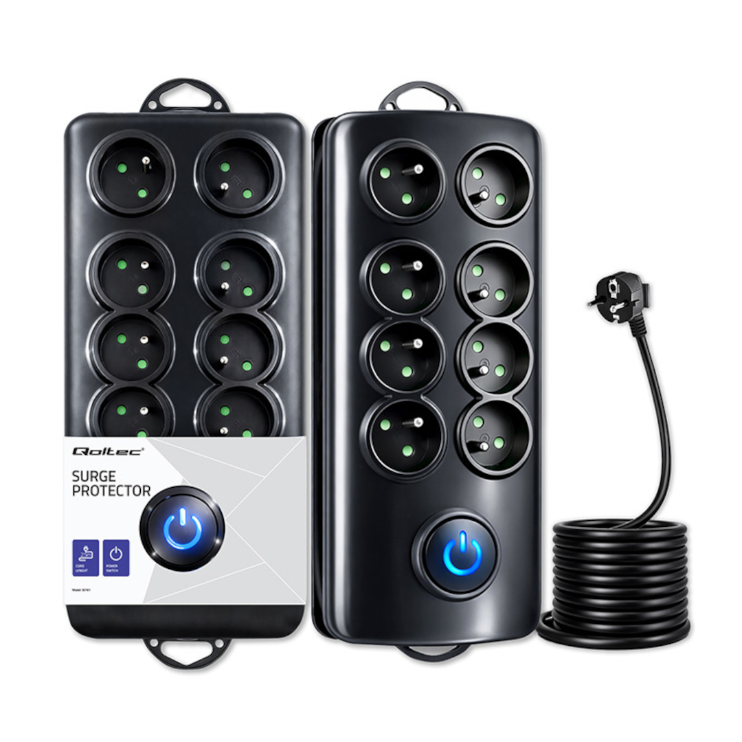 Listwa antyprzepięciowa Qoltec z 8 gniazdami to funkcjonalne i bezpieczne rozwiązanie do zasilania wielu urządzeń jednocześnie w domu, biurze lub warsztacie.Cechy szczególne