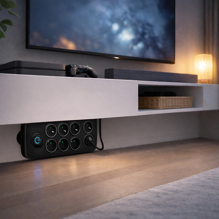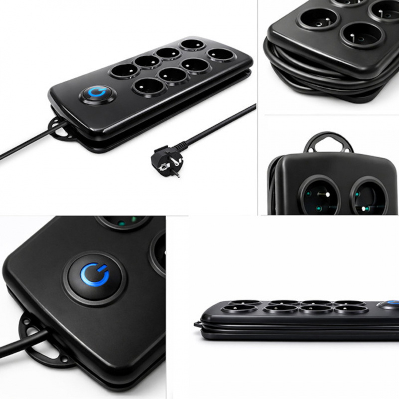- 8 gniazd typu E: zasilanie wielu urządzeń jednocześnie