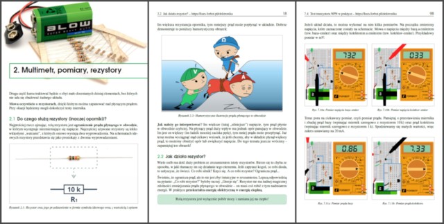 Kurs elektroniki, poziom I w formie e-booka, to zbiór wszystkich części popularnego kursu podstaw elektroniki dostępnego na blogu FORBOT, opracowany w wygodnej formie książki elektronicznej. Materiał liczy 139 stron i został ułożony tak, aby ułatwić naukę nawet osobom, które dopiero zaczynają swoją przygodę z elektroniką. Całość kursu znajduje się w jednym pliku PDF, co eliminuje konieczność przeskakiwania między różnymi stronami internetowymi i pozwala uczyć się bez dostępu do Internetu. E-book jest idealny do czytania na ekranie lub do wydruku. Dodatkowo, na końcu e-booka znajdziesz także 3 strony zawierające materiały pomocne podczas ćwiczeń opisanych w kursie, co czyni go praktycznym narzędziem nauki elektroniki.