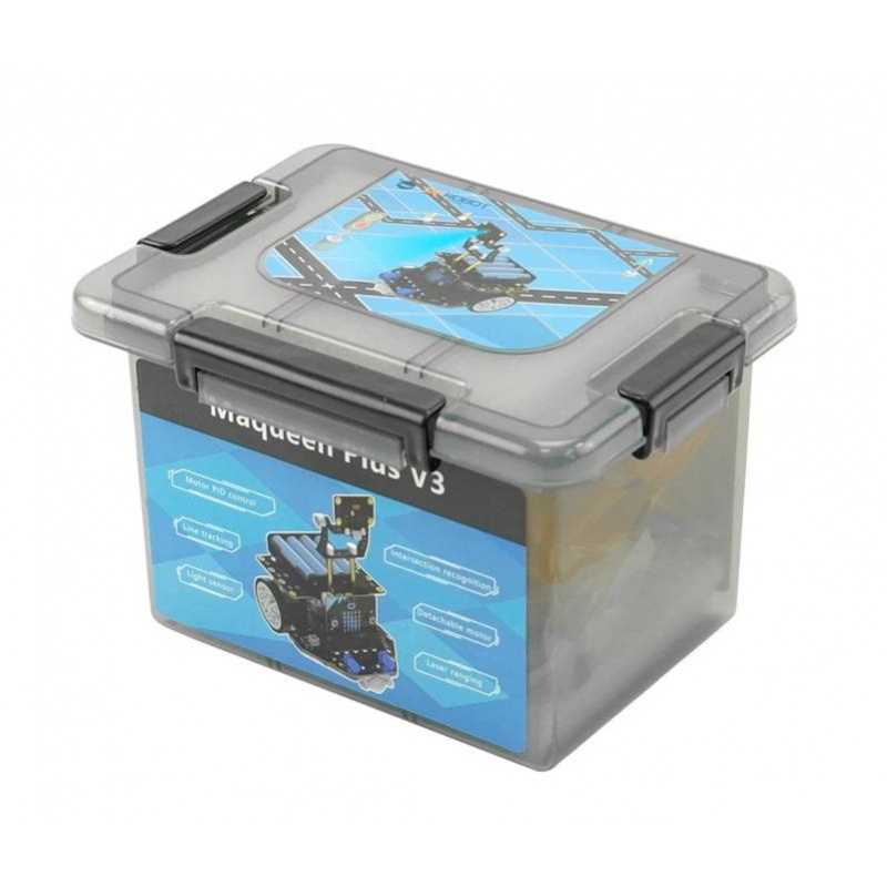 Maqueen Plus V3 wprowadza wiele istotnych zmian względem wcześniejszej wersji Maqueen Plus V2. Najważniejszą z nich jest zastosowanie matrycowego czujnika laserowego zamiast klasycznego czujnika ultradźwiękowego, co przekłada się na większą dokładność pomiaru i lepsze rozpoznawanie otoczenia. W nowej wersji dodano także enkodery z kontrolą PID, czujniki światła, wbudowane algorytmy śledzenia linii i rozpoznawania skrzyżowań, odłączane silniki oraz układ stabilizacji napięcia silników. Dzięki tym zmianom robot oferuje wyższą precyzję, większą funkcjonalność oraz lepsze przygotowanie do zadań konkursowych i bardziej rozbudowanych projektów edukacyjnych.